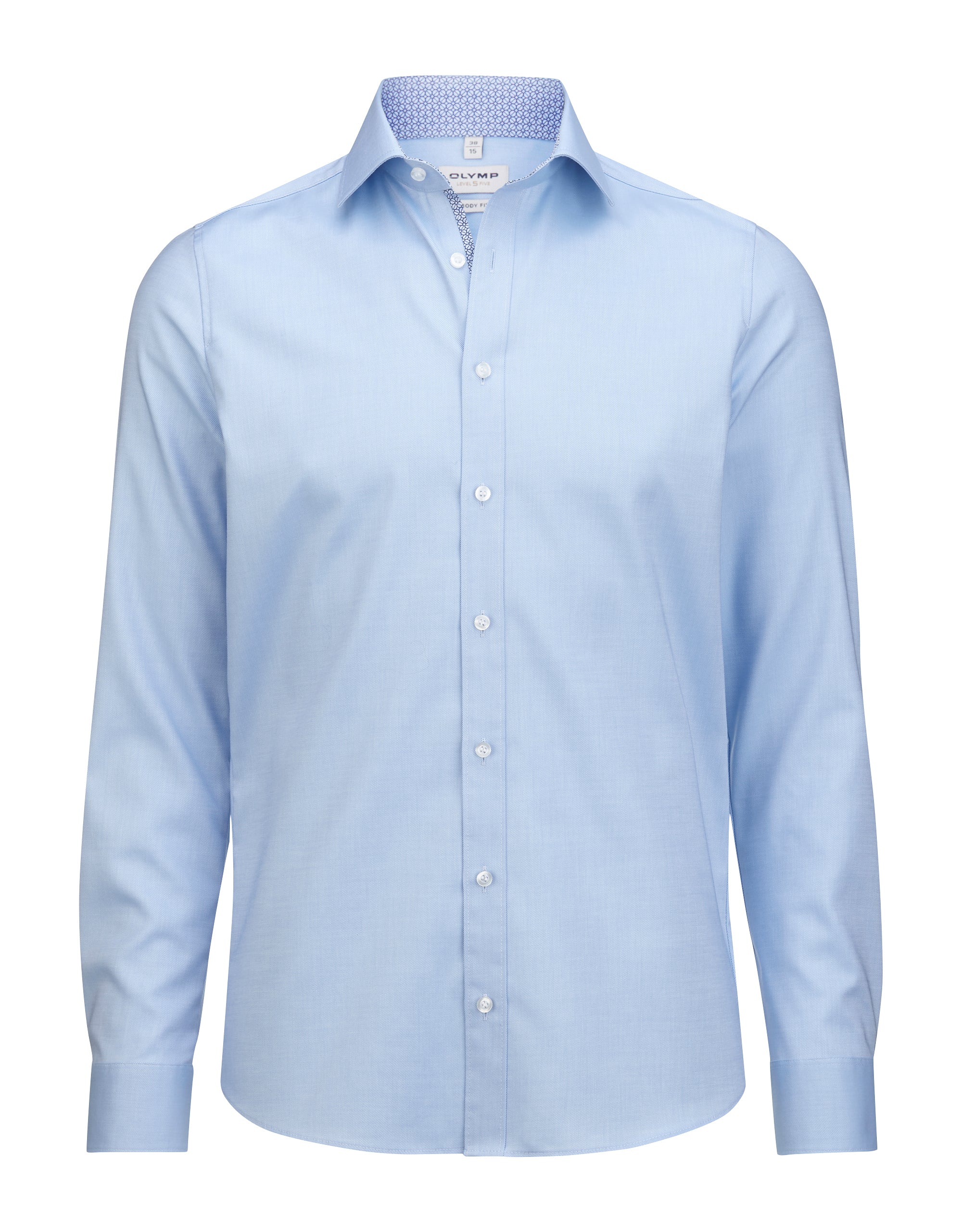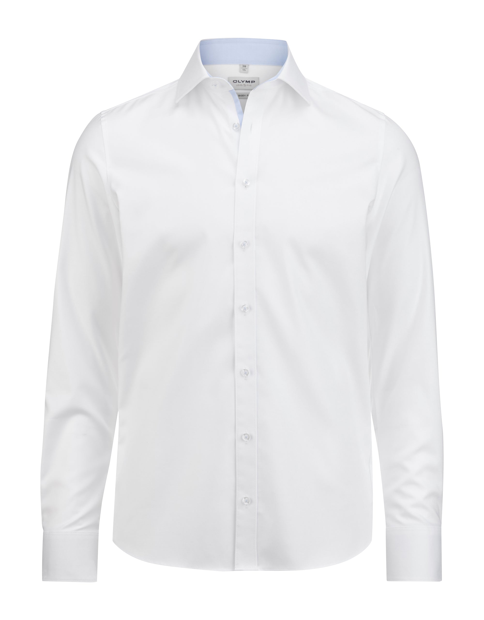 Olymp Herren Hemd Level Five Body Fit Uni zweifarbig Global Kent aus 97% Baumwolle und 3% Elastolefin. Der Stoff ist besonders formbeständig, bügelleicht und passt sich durch den Comfort Strech optimal an die Silhouette an.